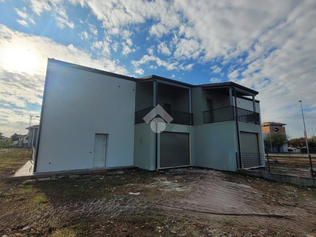 In zona lontanta dal traffico e vicinon ai principali servizi proponiamo una Porzione di Bifamiliare con giardino angolare di 368 mq. La soluzione è composta al piano terra da ampio soggiorno con angolo cottura luminoso con accesso al porticato, bagno finestrato e ripostiglio lavanderia, scala interna alla quale si accede al piano superiore dove troviamo due bagni finestrati, camera matrimoniale con porta finestra alla quale si accede ad un terrazzo coperto, camera e camera con porta finestra alla quale si accede ad un ulteriore terrazzo coperto. Garage singolo con basculante sezionale con accesso diretto all'immobile. La casa è dotata di cappotto esterno, impianto fotovoltaico da (6 Kwh), impianto di allarme, riscaldamento e aria condizionato con pompa di calore e ulteriori comfort isolanti termici e acustici. Disponibilità immediata.