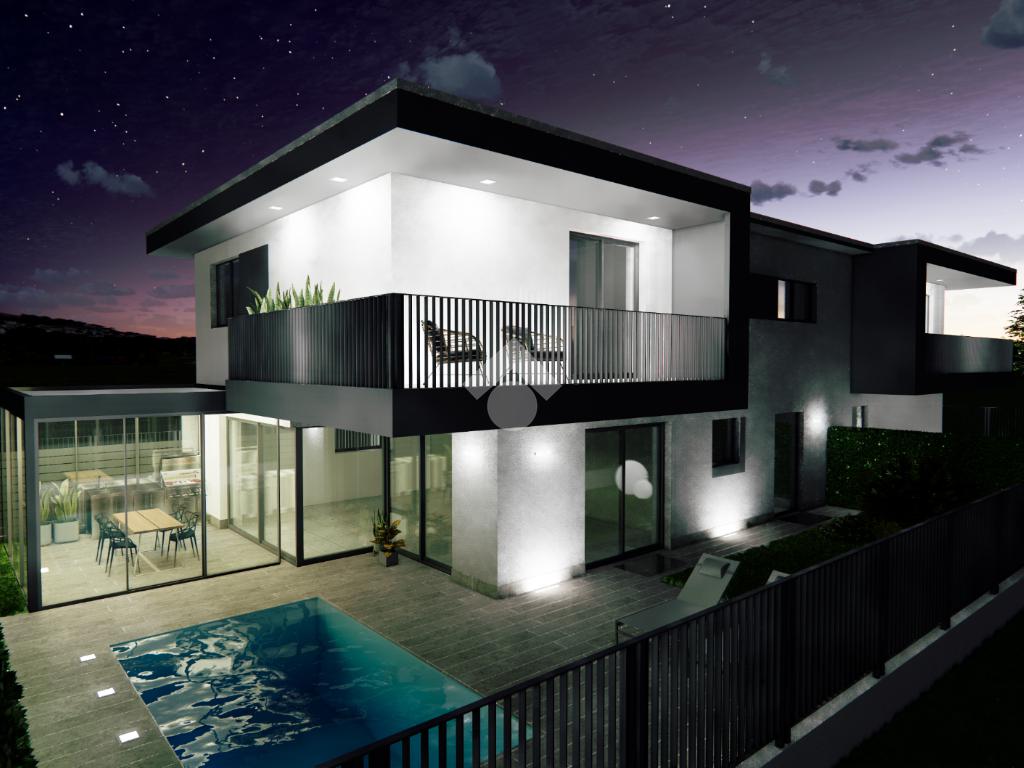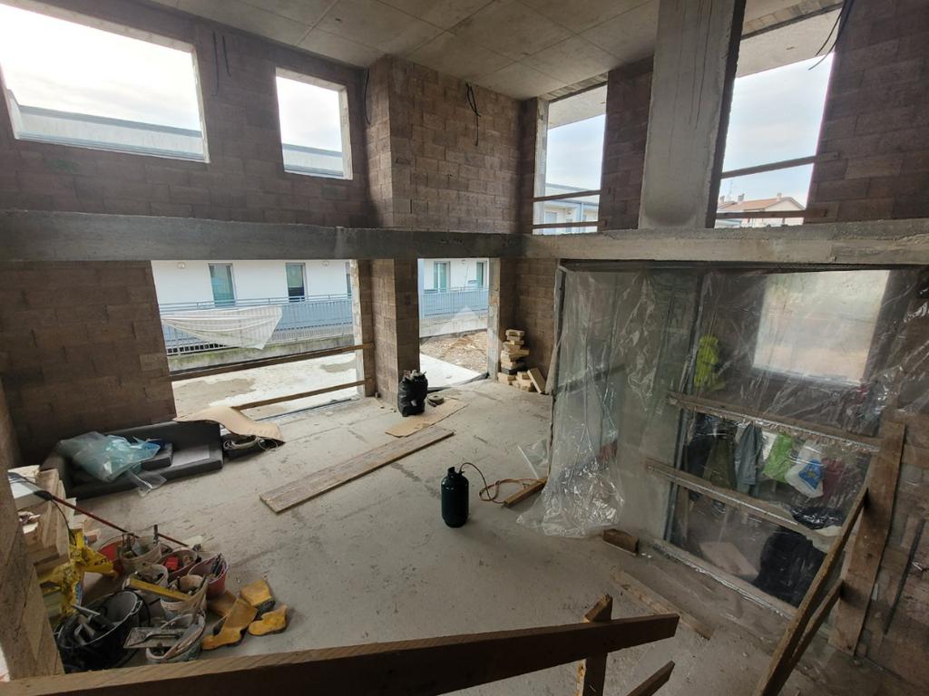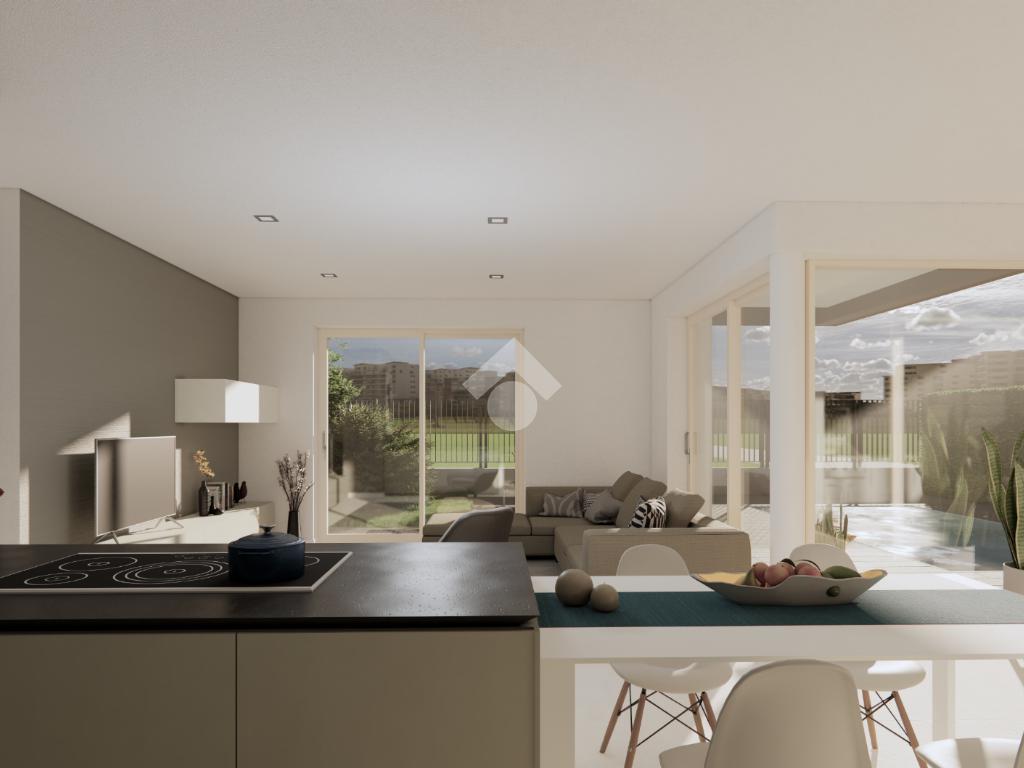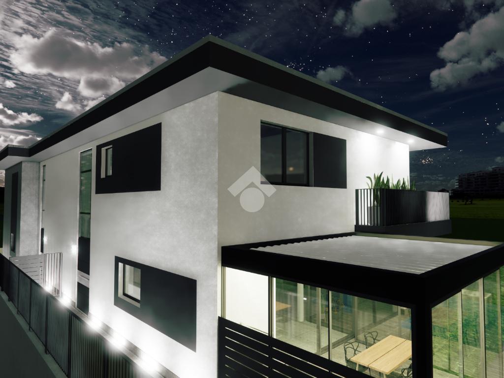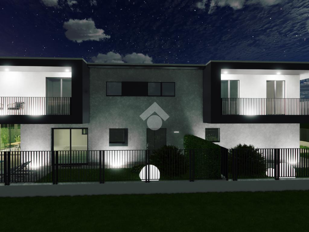 ULTIMA DISPONIBILITA': In zona residenziale proponiamo un Porzione di Bifamiliare con ingresso indipendente, composta al piano terra da ampio e luminoso living con cucina, bagno finestrato, al primo piano camera matrimoniale, due camere con porta finestra con accesso al balcone e bagno finestrato. Al piano interrato cantina consegnata al grezzo con possibilità di ricavare un ulterio bagno e un locale taverna, completa la proprietà un garage quadruplo di circa 50 mq. Impianto di riscaldamento e acqua calda sanitaria con pompa di calore integrato da pannelli fotovoltaici di 6 kwh per un ulteriore risparmio energetico. Possibilità di scelta delle finiture interne.